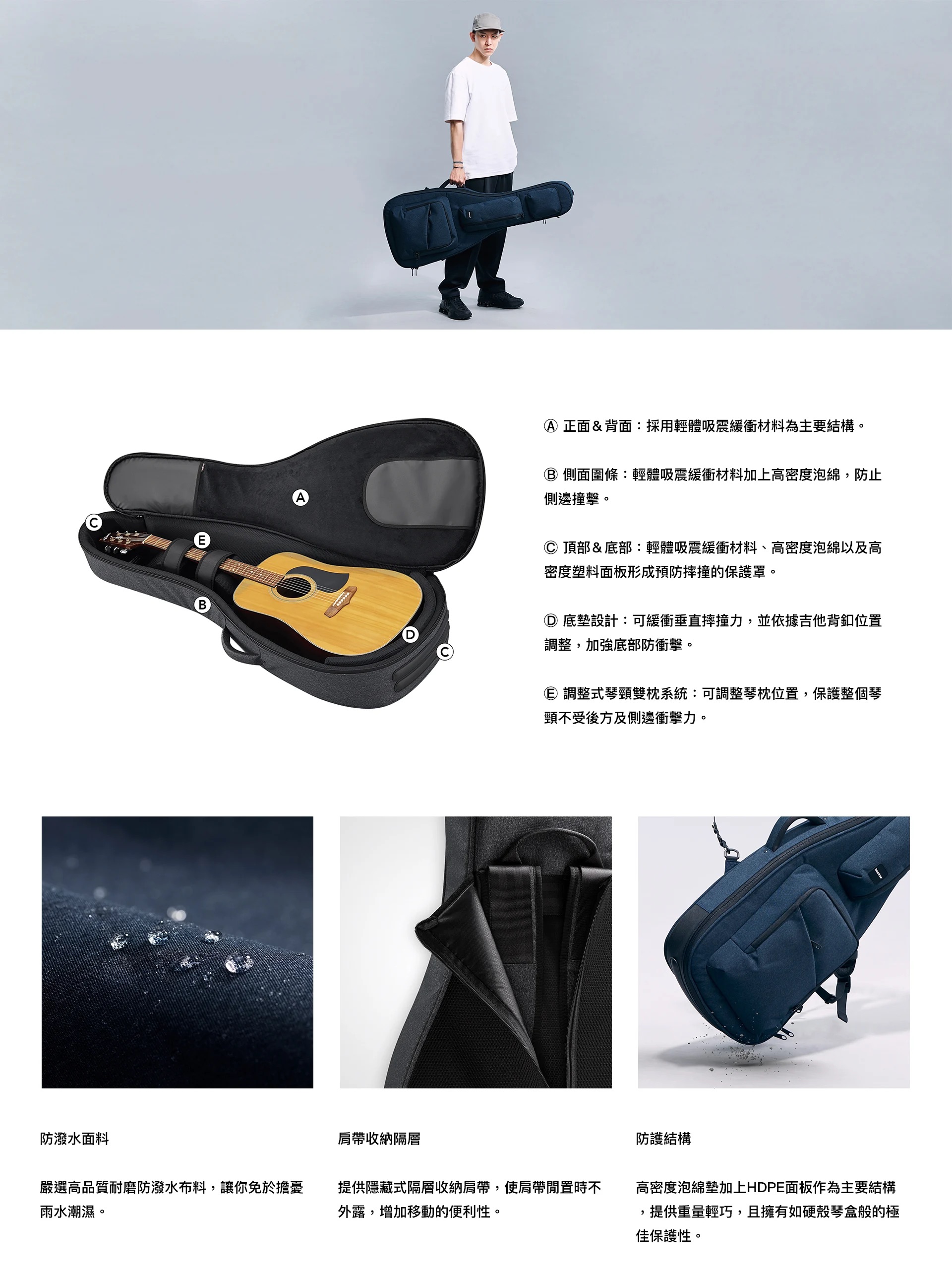 此外,大容量收納口袋設計,可輕鬆放置吉他線材、效果器與各類配件,兼顧機能與整潔,讓裝備一次到位。
